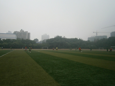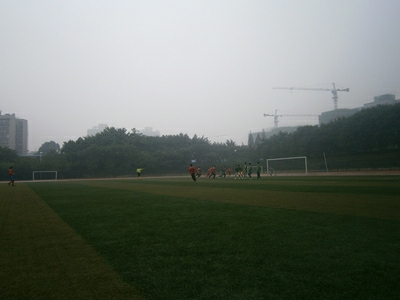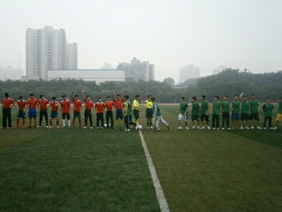 12点30分,裁判一声哨响,队员们便各就各位,比赛正式开始。在上半场的比赛当中,大三代表队充分显现出师兄的专业水平,运用娴熟的技巧和默契的配合,频频紧逼对方球门,并踢进精彩的两分。然而,2012级新生队的实力也是不容小觑的。经过一定的调整,在下半场的比赛中也几次绕过师兄队的重重阻隔,逼到师兄队的球门附近,虽然到最后还是没能进球,但还是赢得了在场观众的欢呼呐喊。最终,大三师兄队以6:0的优势完胜大一新生队。