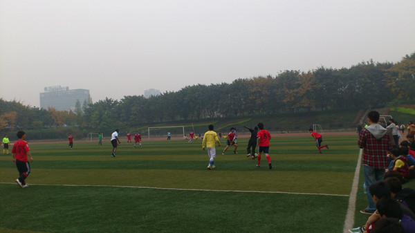 2012年4月6日下午1点,在工商大学主校区足球场上上演了一场精彩赛事。比赛在yl23455永利集团与留学生之间拉开帷幕,阴沉的天气压抑不住队员们火一般的激情,精彩值得期待。