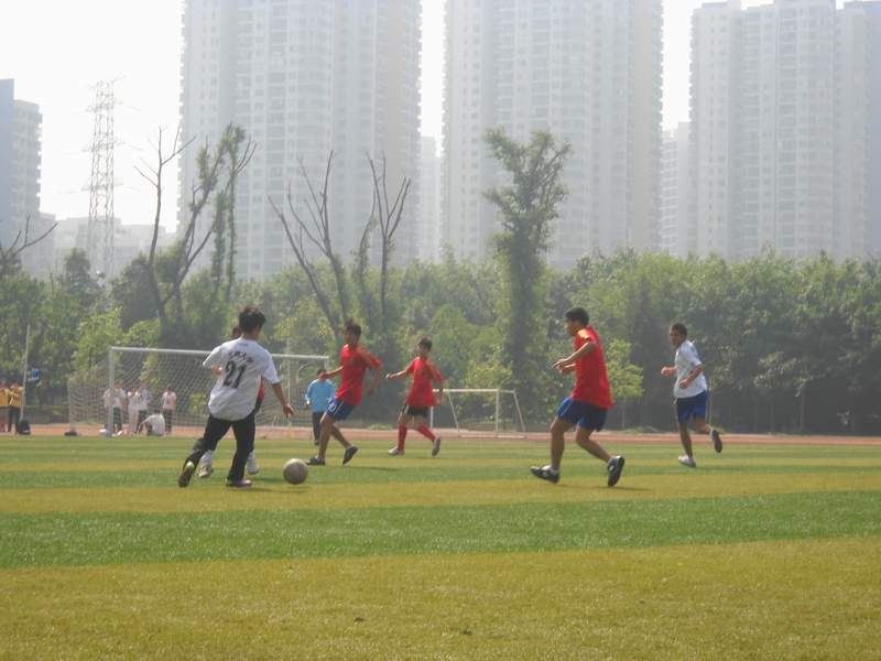 下半场,经过短暂的修整,10级发起了猛烈的进攻。队员们动作敏捷、拼劲十足。精彩的鱼跃冲顶、临空射门、飞身扑救使得场面异常火爆。下半场开始五分钟左右,10级球员得到一个绝佳的机会,假动作骗过08级门员的防守,球进,顿时欢呼声乍起。而在下半场中,双方拉锯更明显,使得最后比分定格在2:1,08级获胜。