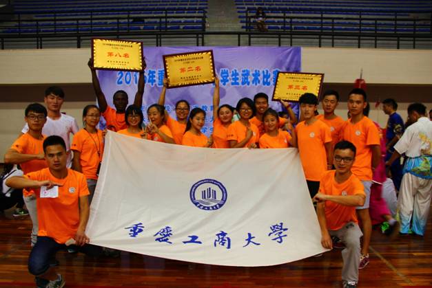 我校武术队队员们在教练黄龙老师和曾文瑶老师的带领下,利用课余时间、周末和节假日长期坚持训练,在有限的场地器材条件下,队员们克服伤病困扰坚持不懈,不断艰苦训练。在比赛中,他们相互加油,相互鼓劲,在赛场上不畏强敌,顽强拼搏,最终取得优异的成绩。希望他们能再接再厉在今后的比赛中继续取得好的成绩,为重庆工商大学争光!