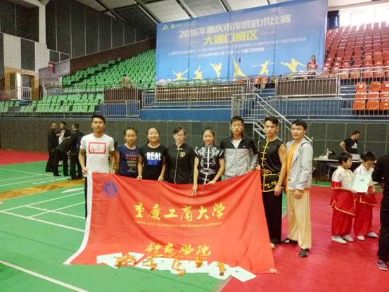 10月22至23日,由重庆市武术运动管理中心主办,大渡口区体育局承办的2016年重庆市传统武术比赛,在大渡口区体育馆隆重举行。我校武代表队业队再创佳绩,参赛的8个运动员共揽15块奖牌,包括金牌4块、银牌3块、铜牌8块,团体总分位居重庆市高校第一名。
