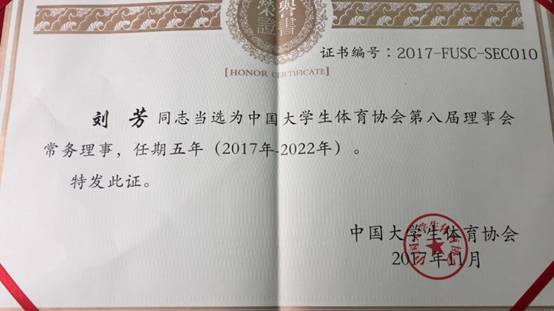 yl23455永利集团刘芳教授当选中国大学生体育协会第八届理事会常务理事