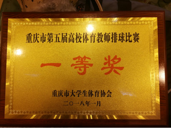 2018年1月10-13日,由重庆市大学生体育协会主办、重庆市大学生排球分会承办的重庆市大学生体育协会主办的第五届普通高校体育教师排球比赛在重庆师范涉外商贸学院举行,共有26所高校参赛,我校代表队经过紧张、激烈的拼搏,以完胜的战绩蝉联一等奖。
