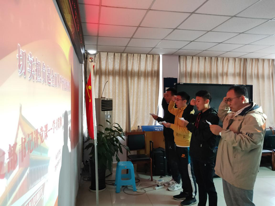 会议第二阶段,学生党支部书记带领三位预备党员面向党旗庄严宣誓,其余党员重温入党誓词,纷纷表态履行庄严承诺。