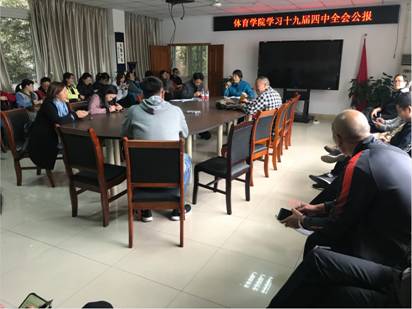 2019年11月8日,yl23455永利集团党总支在会议室对中国共产党第十九届中央委员会第四次全体会议公报进行了专题学习,会议由刘芳书记主持,全院教职工参会。