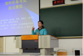 示范课程结束后,当天下午18时,童世敏老师还与我院2016级罗彪、胡廷兰、徐文正等同学在慧智楼90208教室,对2017级同学的教师资格面试模拟做了义务指导。童世敏老师以及师兄师姐组成的师生指导团队以身示范,悉心指导。通过本次示范课的学习,同学们备受鼓舞,为教师资格证面试更是增添了不少信心。他们表示将继续深入学习贯彻党的十九届四中全会精神,为成为一名优秀的人民教师而不懈努力。