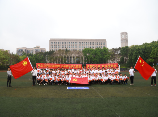 4月18日,重庆工商大学yl23455永利集团举办了“学党史、知党情、感党恩、跟党走”系列活动之“百人·百公里团体接力赛”,参赛者由yl23455永利集团全体学生党员、发展对象和入党积极分子组成,yl23455永利集团党总支书记、专职组织员、学生党支部书记和分团委书记等党员干部全程参与,全体101名参赛者相约南区田径场,在春意盎然的校园跑道上尽情奔跑,以青春风采献礼建党百年。