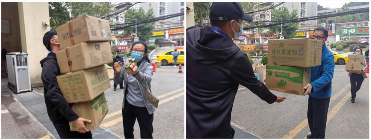 前方志愿者冲锋陷阵、越战越勇,后方“招兵备粮”也如火如荼、紧锣密鼓。梁斌副院长在后方组织物资保障,在第一天学生晚饭延迟的情况下,第一时间给学生送饺子、方便面;刘芳、马雪蓉、杨丽芳老师做好可口饭菜送到志愿者手中;杨辉、高清伟老师在志愿者服务队缺少生活用品时,及时组织购买送达。无论防疫物资,还是餐食供应、自身安全保障等工作,都做到精心组织、有条不紊、扎实有序,充分满足支援抗疫一线的需要。