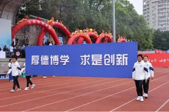 4月13日上午,重庆工商大学第二十一届运动会在南区田径场隆重开幕。校领导、第二十一届田径运动会组委会成员和师生代表参加了此次开幕式。