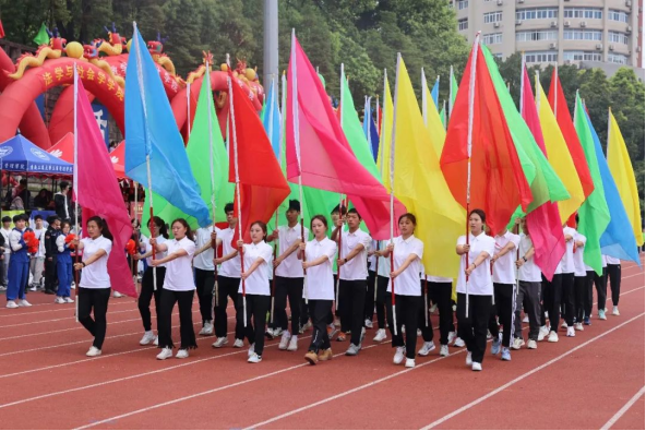 伴随着激昂的运动员进行曲,由yl23455永利集团高水平男足队员、2022级本科生组成的会旗、彩旗方阵陆续入场,他们目光坚定而自信,步伐矫健而整齐,一面面彩旗迎风飘扬,五颜六色的彩旗象征着我校丰富多彩的校园生活。