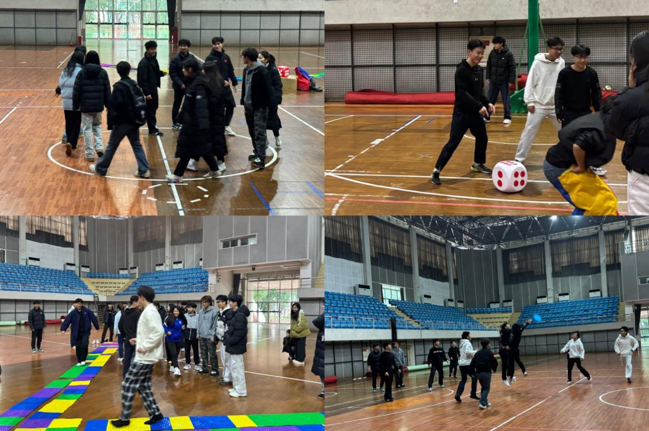 活动现场氛围热烈,多个趣味与协作兼具的项目依次开展。“听歌识曲” 环节,各小组抢答踊跃,同学们凭音乐感知争答歌名,在互动中拉近距离;“一块五” 项目里,参与者围圈响应金额快速组队,提升团队默契与反应力。“剪刀石头布指压板游戏” 中,队员赤脚跳指压板,相遇对决充满趣味,尽显拼搏精神;“袋鼠跳接力” 时,同学们套布袋按骰子点数接力跳,诠释争先协作风貌;“极限飞盘” 项目尤为激烈,进攻方传盘推进、防守方拦截争权,飞盘传递尽显策略与协作。