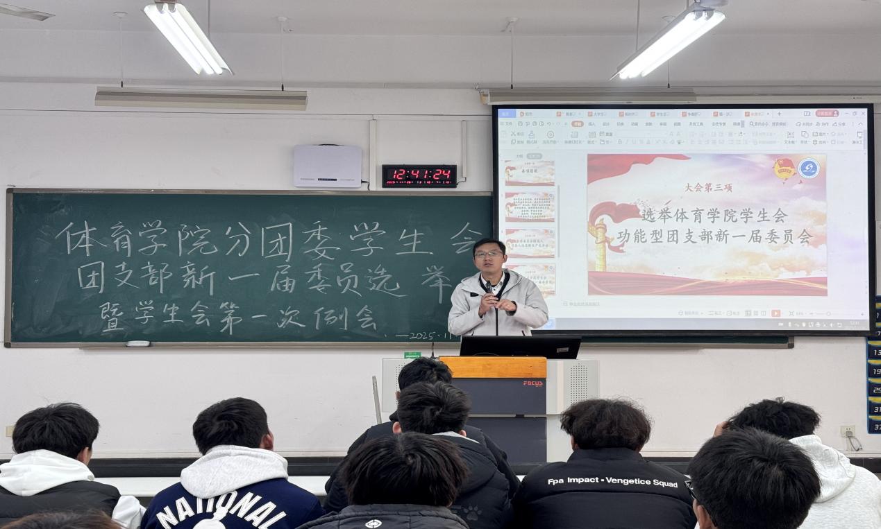 选举结束后,学院郭书记发表讲话,对功能型团支部新当选的委员会成员表示热烈祝贺。他指出,功能型团支部的成立是学院深化共青团改革、加强学生组织建设的重要举措,更是引领青年学生听党话、跟党走的重要阵地。他希望新当选的委员们牢记初心使命,切实发挥先锋模范作用,以服务同学为核心,创新工作方法,丰富活动形式,让团支部真正成为凝聚青年、服务青年、引领青年的坚强堡垒;同时鼓励全体团员同学立足专业特色,将体育精神融入日常学习生活,在实践中锤炼品格、增长才干,为学院发展和共青团事业贡献青春力量。