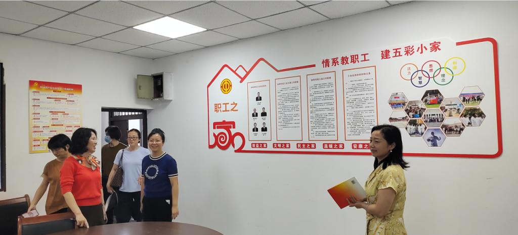 2023年5月24下午,重庆市教科文卫体工会副主席袁菁霞、二级调研员刘春艳以及重庆工商大学工会副主席邱枫一行到yl23455永利集团就“五彩职工小家建设”进行调研并指导工作。yl23455永利集团党总支书记王静、组织员余晓、工会主席张亚峰、办公室主任周晋、学工办主任傅杨以及全体工会委员参加了学习调研。