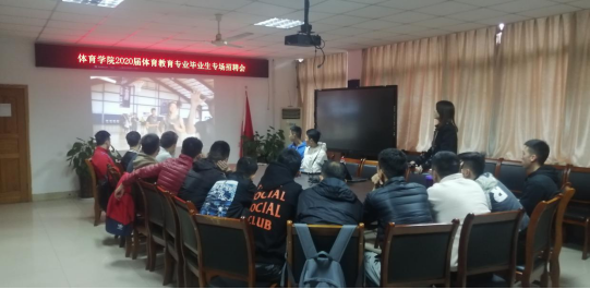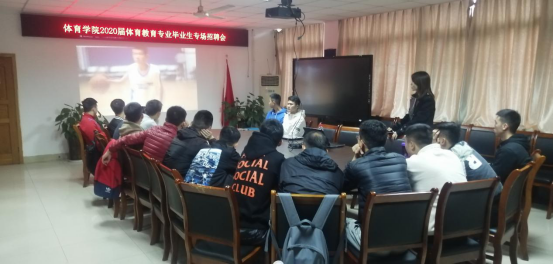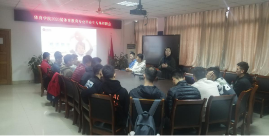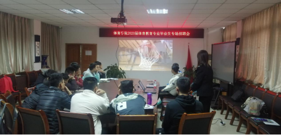 2019年11月6日下午14:00,美国篮球学院重庆分院到我院召开现场招聘会,学院体育系副主任、本届篮球专项指导老师蒋愉、就业联络员傅杨老师和2020届体育教育专业篮球专项学生参加了此次招聘会。