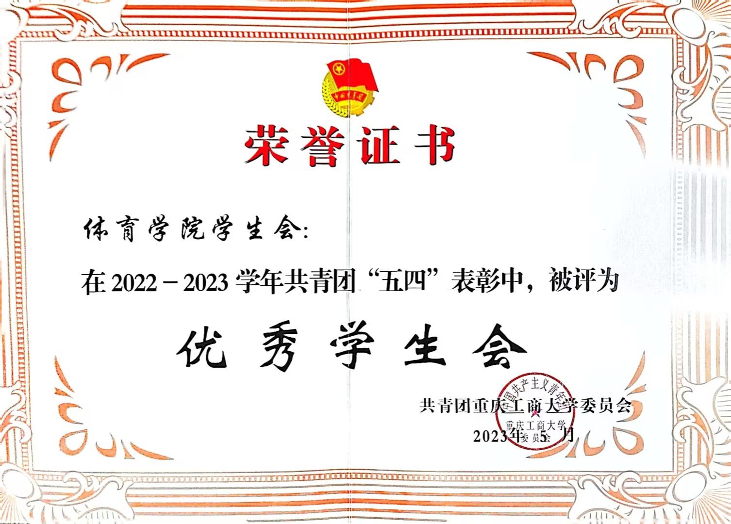荣获共青团“五四”表彰优秀学生会