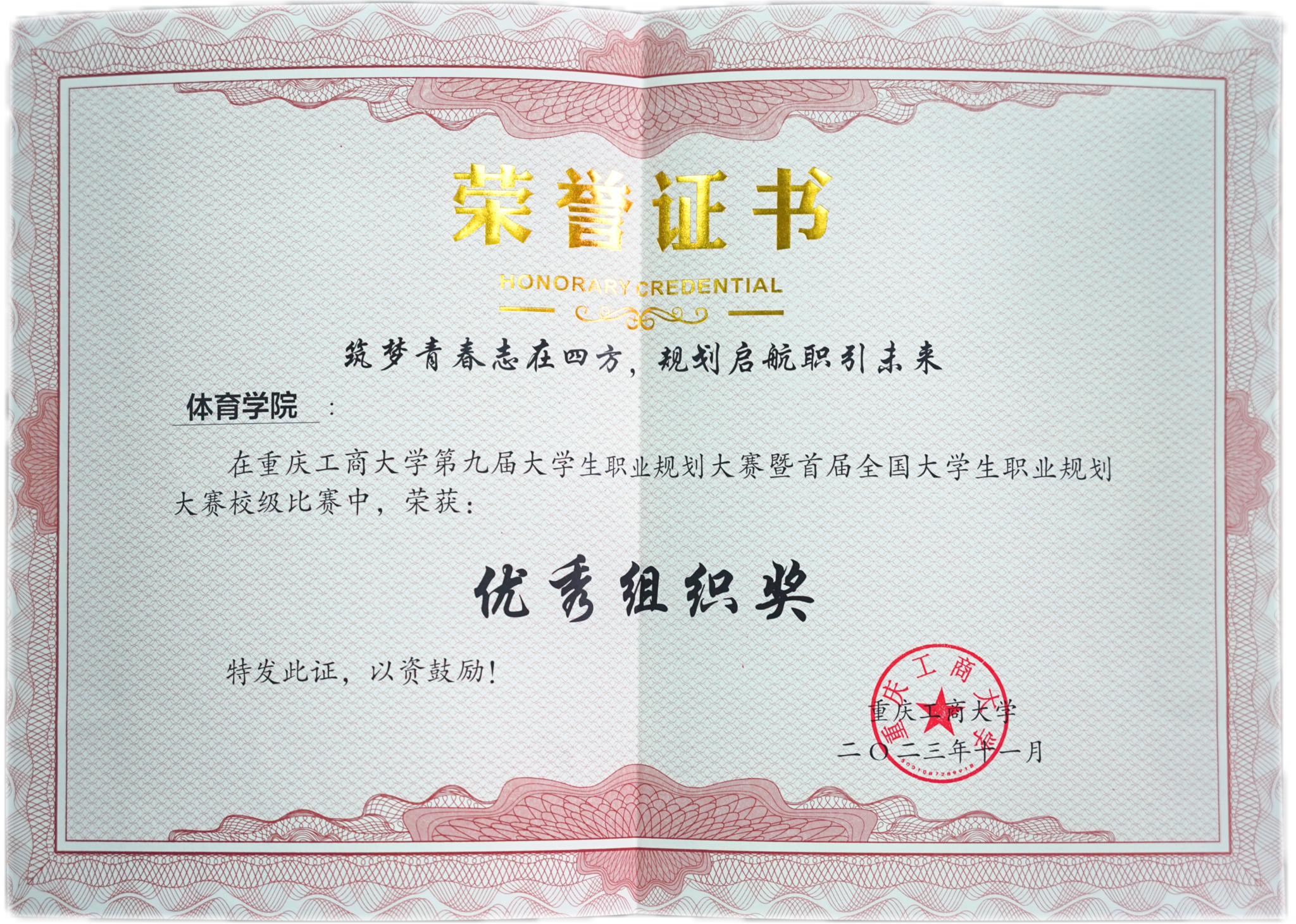 荣获重庆工商大学第九届大学生职业规划大赛暨首届全国大学生职业规划大赛优秀组织奖