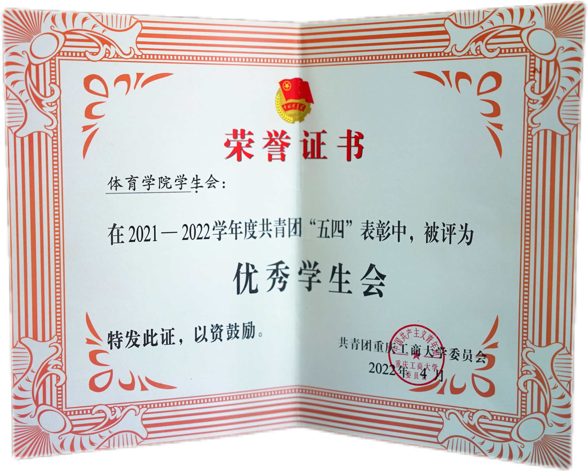 荣获共青团“五四”表彰优秀学生会