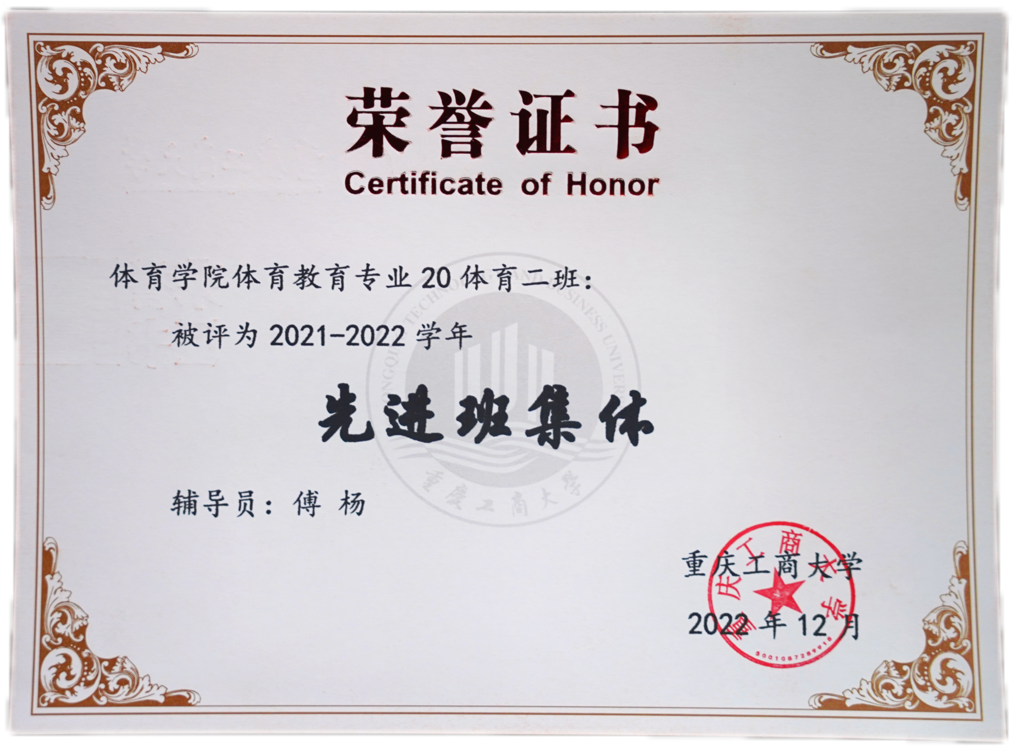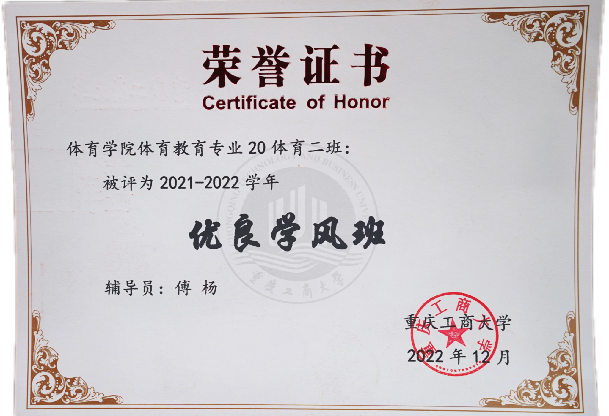 2020级体育教育专业2班荣获校级先进班集体、优良学风班