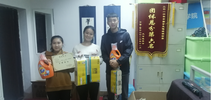 为了肯定他们取得的成绩,鼓励他们继续做表率,创先优,我院研究决定,对获得校级“文明寝室”的学生集体进行物质奖励。此外,学院还对全院室长、楼管会干部等发放奖品,肯定他们的工作,希望他们继续严格按照《yl23455永利集团学生宿舍安全检查零报告制度管理办法》文件要求,每天按时、准确上报各寝室学生归寝情况,确保学生住宿安全,进一步规范学生宿舍行为,营造安全、文明、和谐的公寓环境。怀抱学院发放的奖品,学生充分感受到来自院领导和老师们的真切关怀,脸上洋溢出幸福满足的笑容。