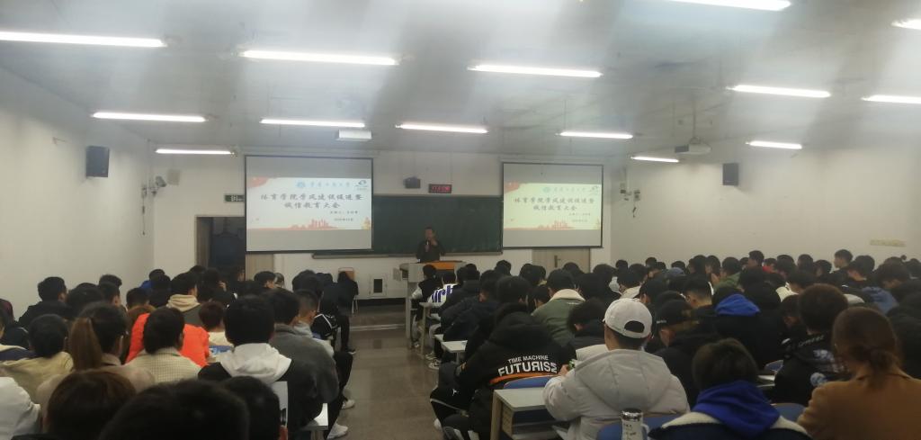 王书记指出,学风是治学之风,更是做人之风,学风和诚信是学生成才的重要保证。近年来,学院已形成良好的班风学风,考研学生也逐年增多,他通报了近年来学院的升研情况,希望2018级学生有计划、分步骤地安排好考研复习任务,严以律己。随后,王书记为学生开展诚信教育主题宣讲,要求全院学生再次系统学习《重庆工商大学本科学生违纪处分管理办法》、《重庆工商大学学生考试违纪及作弊处罚规定》等相关内容,并列举了近年来发生在学校中的真实违纪违规案例极其严重后果,警示同学们自觉遵守考场纪律,诚信应考,不抱侥幸心理,强化学生诚信意识,使学生充分认识到违反考试纪律对个人成长的危害性。