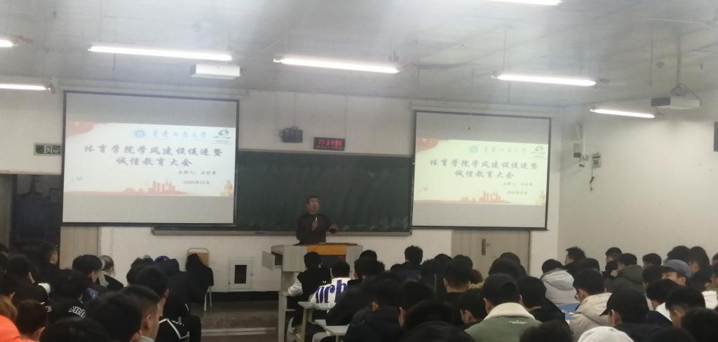 2020年12月2日下午,yl23455永利集团学风建设促进暨诚信教育大会,在慧智楼209教室召开,yl23455永利集团党总支书记王竹青、yl23455永利集团分团委副书记傅杨,以及yl23455永利集团2018级、2019级、2020级体育教育专业学生参加了本次会议。