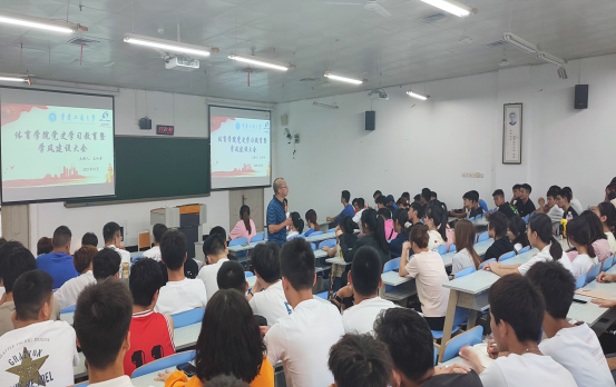 为加强党史学习教育,促进优良学风形成,2021年10月8日下午,yl23455永利集团党史学习教育暨学风建设大会在慧智楼209教室召开,出席会议的有yl23455永利集团党总支书记王竹青、yl23455永利集团分团委副书记傅杨、yl23455永利集团学生党支部书记刘有斌,以及2021级、2020级体育教育专业学生。