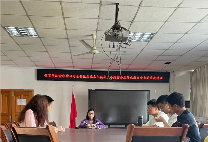 分团委书记傅杨谈到,成就源于奋斗,胜利来之不易。北京冬奥会、冬残奥会的成功举办,凝结着各条战线人们的辛勤付出和智慧汗水。作为一名共青团干部,将以身作则,引导广大青年学生把个人理想与祖国前途、民族命运联系起来,大力弘扬北京冬奥精神,努力拼搏,砥砺前行,为实现中华民族伟大复兴的中国梦而努力奋斗!