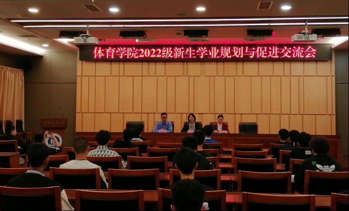 10月6日中午,yl23455永利集团在校图书馆第一会议室召开了 “2022级新生学业规划与促进交流”的主题会议。出席本次会议的有党总支书记王静、院长范文杰、党总支副书记张薇薇、副院长梁斌、体育系副主任蒋愉、新生辅导员刘有斌和全体新生,会议由学院党总支副书记张薇薇主持。