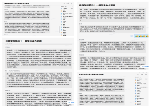党的二十大报告在全院青年学生中引起热烈反响。大家纷纷表示要认真学习宣传贯彻党的二十大精神,全面贯彻习近平新时代中国特色社会主义思想,深刻领悟“两个确立”的决定性意义。作为新时代青年,必须牢记习近平总书记的嘱托,在党的领导下,以新时代好青年应有的姿态,奋进新征程,诠释新使命,创造新业绩,为实现第二个百年奋斗目标、实现中华民族伟大复兴的中国梦而不懈奋斗!