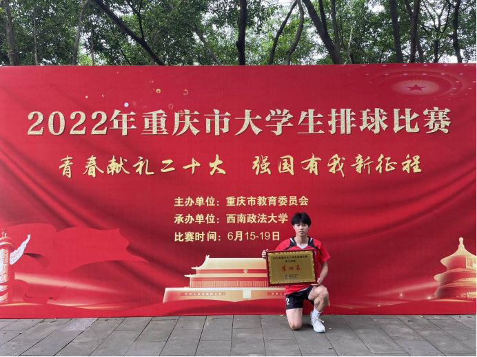 他努力掌握基本专业技能知识,提升羽毛球专项能力,同时跟随校男排高水平队伍拓展自己的专业技能水平,考取相关资格类证书。多次参加中国大学生排球联赛(高水平组)、重庆市大学生排球联赛,荣获2022年重庆市大学生排球联赛男子丙组第四名、2023年重庆市大学生排球联赛男子丙组第三名。