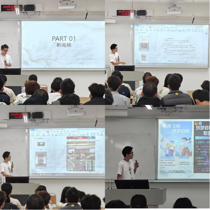 培训会上,刘宇强以PPT的形式深入浅出地讲解了宣传工作的重要性及主要内容,包括海报制作、宣传文案撰写、学院活动报道等方面。他强调了宣传部门在信息传播和文化建设中的核心作用,并指出通过有效传递信息,可以营造积极向上的校园文化氛围。同时,他还详细讲解了拍摄技巧与基本要求,从近景、中景、远景等不同角度进行了生动的阐述,并利用PPT中的事例与图片帮助学生们更好地理解和掌握宣传工作的精髓。