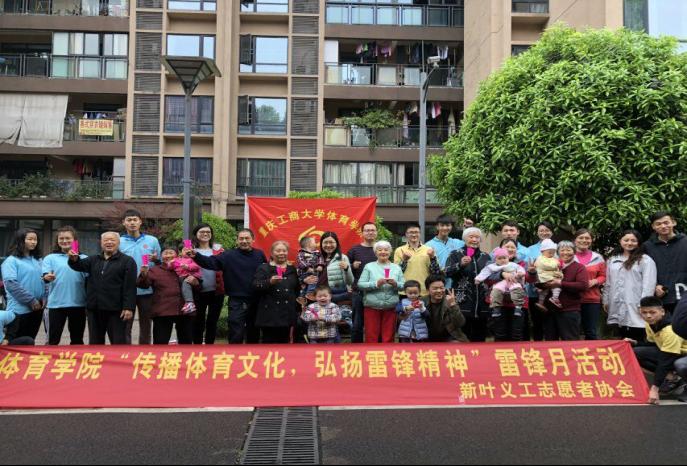 为弘扬“奉献、友爱、互助、进步、为人民服务”的雷锋精神,增强大学生的志愿服务意识,提高对社区的责任感和归属感。重庆工商大学yl23455永利集团新叶义工志愿者协会于2018年3月24日上午9时,在重庆市南岸区海棠溪街道招商科苑小区举办义工文化节“传播体育文化,弘扬雷锋精神”雷锋月活动。