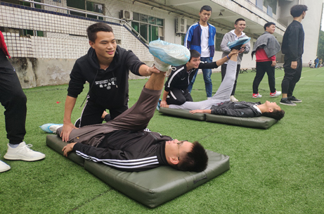 党员服务站副站长骆洋:正在教同学们如何拉伸