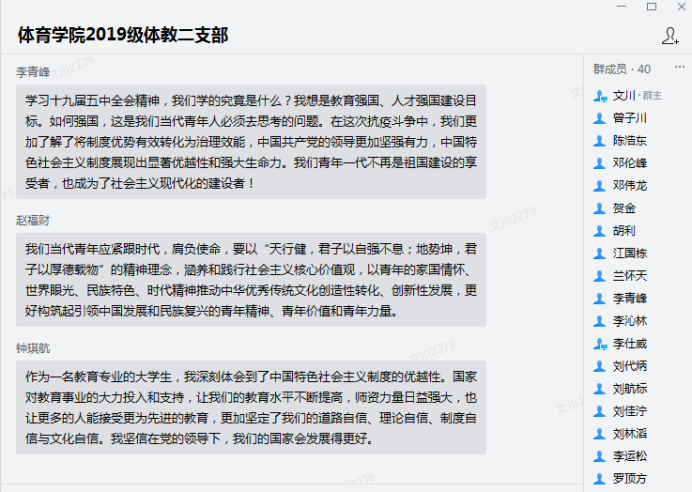 新时代的青年,是当下的见证者和未来的亲历者,广大青年要深入学习贯彻习近平新时代中国特色社会主义思想,自觉主动学、及时跟进学、联系实际学、笃信笃行学,坚持把初心使命举过头顶,保持一份赤子之心,将青春融入国家的发展和民族的事业之中。理想是青春的旗帜,要志存高远、坚定信仰;学习是青春的阶梯,要珍惜韶华、刻苦求知。本次学习十九届五中全会精神,激励着yl23455永利集团每一位青年,同时希望同学们能认真学习党的十九届五中全会精神,用科学的思想武装头脑,不断提高思想觉悟,坚定理想信念,做一名合格的新时代青年!