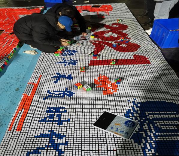 为进一步丰富校园文化生活,迎接新时代,踏上新征程,引导工商学子践行社会主义核心价值观,重庆工商大学M魔方社在yl23455永利集团分团委指导下,于2020年12月29日-2021年1月3日,在校前广场举办了以 “践行青春使命·开启新年中国梦”为主题的魔方拼图展。