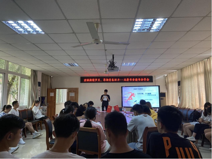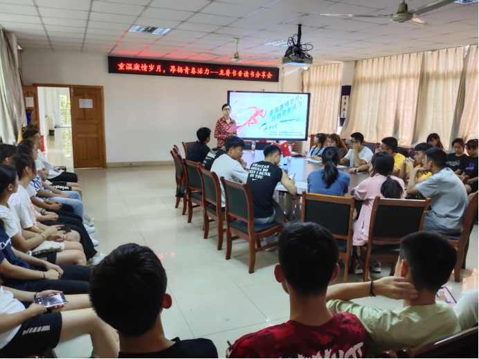 为激励青年大学生满怀信心迈进全面建设社会主义现代化国家新征程,让新时代青年了解新中国体育史,铭记那些意气风发的时刻。2021年5月14日下午由共青团重庆工商大学委员会主办、yl23455永利集团分团委承办的“龙脊书香”读书分享会在yl23455永利集团二楼会议室顺利举办。本次活动以“重温激情岁月,昂扬青春活力”为主题,yl23455永利集团分团委副书记傅杨以及60余名同学参加活动,重温激情岁月,眺望前进道路。