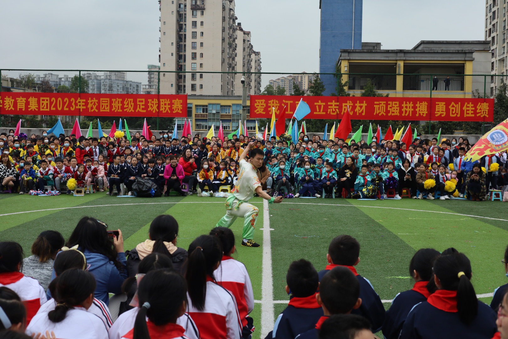 3月28日,江南小学教育集团“阳光体育 超越自我”2023年体育节隆重开幕,我校武术代表队受邀参加开幕式演出。本次演出由校团委负责老师王微带队,武术队总教练黄龙老师精心编排,来自yl23455永利集团的17名武术队员们尽心排练,他们精神饱满,意气风发,为江南小学全体师生带来了一场中华武术的视觉盛宴!