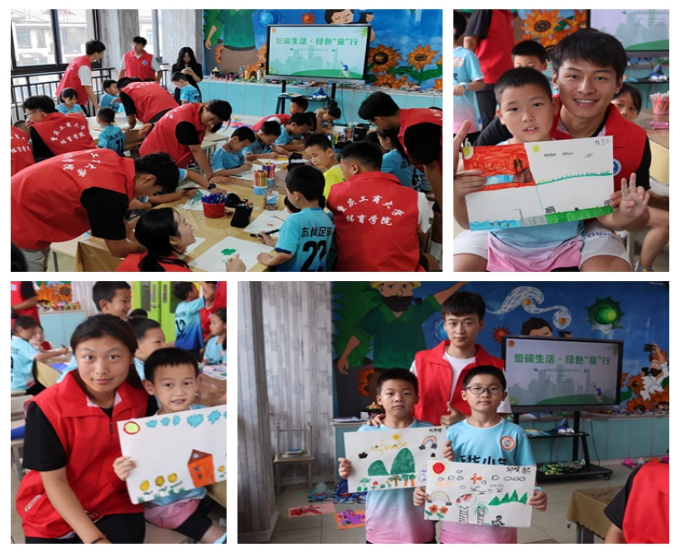 实践团成员为孩子们宣传体育赛事“绿”知识