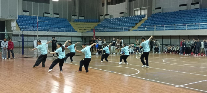 yl23455永利集团党总支副书记张薇薇为本次开幕式致辞:通过“迎新杯”篮、足球赛的举办,能增加各班级凝聚力,加强新老生之间的交流,也给同学们自我展示的舞台。希望运动健将们在比赛中,弘扬体育精神,充分展现团结进取、蓬勃向上的精神风貌,赛出风格、赛出水平、赛出友谊,预祝本次“迎新杯”篮球、足球赛取得圆满成功;接着,裁判员、运动员代表郑重宣誓;随后,武术表演队、啦啦操队带来了精彩表演,点燃了赛场的激情。最后,院长范文杰宣布比赛正式开幕,体育系副主任蒋愉为本次比赛开球。