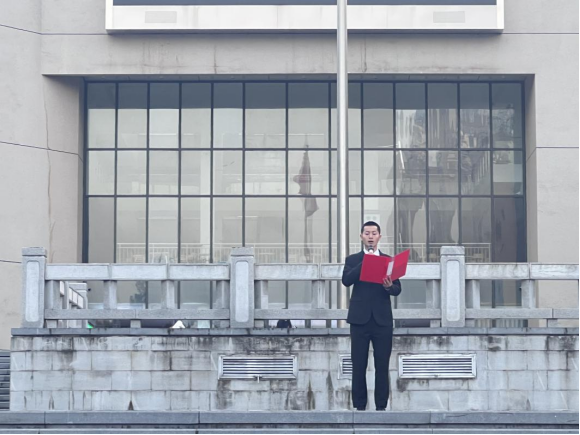 升旗仪式完毕后,第31届世界大学生运动会志愿者、2022级体育硕士张虎代表学生在国旗下演讲。他表示,青年人作为社会建设中的中坚力量,要有冲劲、韧劲和干劲。他倡导同学们应该牢牢把握时代机遇,担起肩上的责任,以青春之我塑造能干之才,以微微星光,点亮奋斗之路。