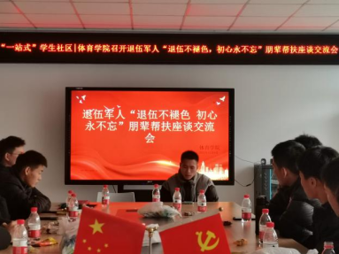 为进一步推进一站式学生社区建设,发扬退役士兵能吃苦、肯奉献的优良品质,进一步树立典型,充分发挥退伍大学生的先锋模范作用。12月8日下午,yl23455永利集团南六楼管会在二楼会议室召开“退伍不褪色·初心永不忘”朋辈帮扶座谈交流会,yl23455永利集团退伍学生、南六楼管会干部、各年级学生代表参加了此次座谈会。
