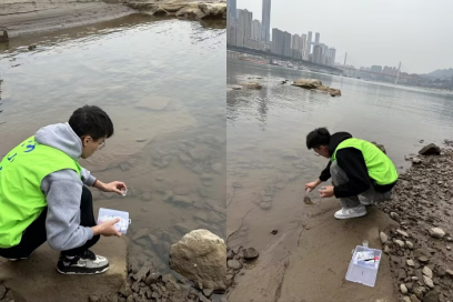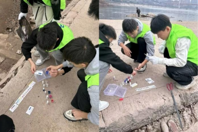 随即“河小青”志愿者们对长江水进行现场取样,在河边取水并现场进行了各项水质检测,检测结果显示水质正常。在“河小青”们的共同努力下清理了海棠溪烟雨公园河流沿岸的垃圾,使河流沿岸面貌焕然一新。