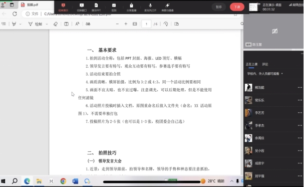 为加强我院宣传工作队伍建设,增强团学骨干们的文稿写作能力,提高工作效率,同时加强与兄弟院校沟通交流,学习宣传工作成功经验,推动我院宣传工作高质量发展。5月16日,yl23455永利集团分团委组织开展线上新闻写作与摄影技巧专题培训会。活动邀请了金融学院分团委负责宣传工作的执行主席陈玉慧主讲,学院各学生组织学生干部全体成员参加培训会。会议由yl23455永利集团分团委学生会干部2022级学生许吉文主持。