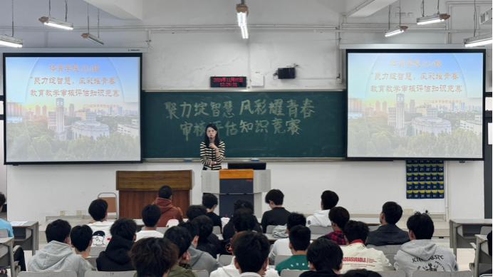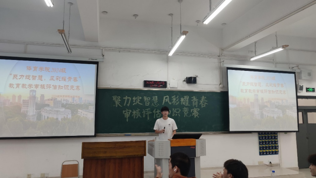 为积极响应学校本科教育教学审核评估的号召,让同学们全面了解审核评估的目的、意义和重要性,营造人人参与审核评估的浓厚氛围,11月7日,yl23455永利集团精心策划并成功举办了“聚力绽智慧,风彩耀青春”教育教学审核评估知识竞赛。yl23455永利集团分团委书记、2024级辅导员傅杨以及2024级全体本科同学参与。
